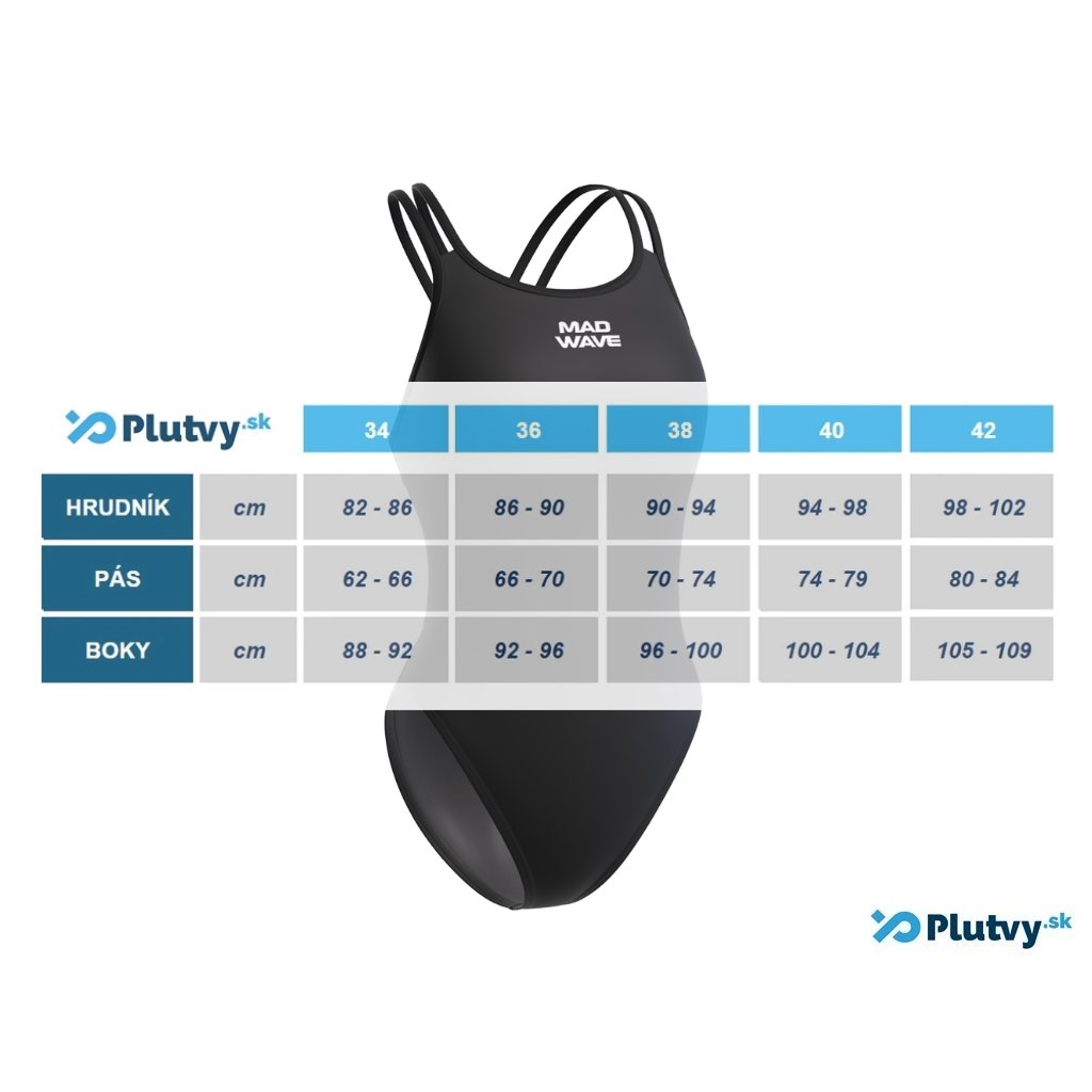 Mad Wave CrossBack PBT sú jednodielne športové plavky pre dámy na pravidelné plavecké tréningy a kurzy alebo na kondičné a rekreačné individuálne plávanie. Majú otvorený strih s tenkými dvojradovými ramienkami, ktoré sa na lopatkách križujú a dodávajú im zaujímavý štýl. Majú vysoké vykrojenie spodnej časti, vďaka čomu poskytujú maximálnu flexibilitu a voľnosť pohybu. Výstrih nie je veľmi hlboký a je elegantný. Zadná strana plaviek je otvorená a krásne zvýrazňuje ženské krivky.